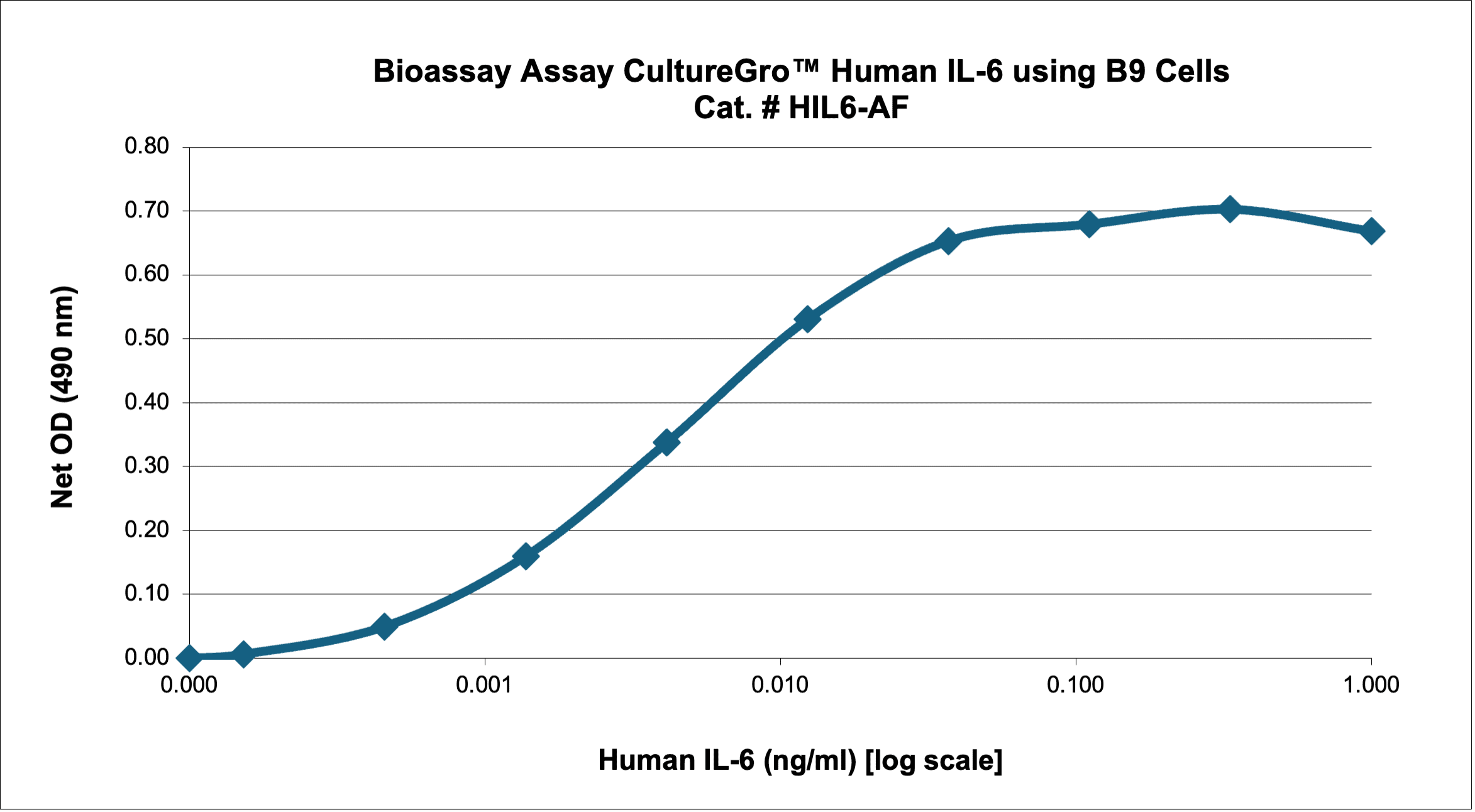 Determined by its ability to stimulate the proliferation of mouse B9 cells.